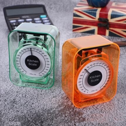 Product information: Color: random color Power supply mode: mechanical spring, no power supply Function: kitchen gram weighing scale Product size: