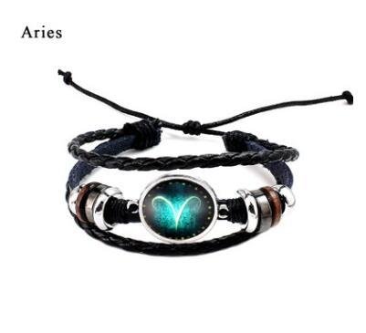Twelve constellation glass piece couple bracelet Style; Europe and America Material: Alloy Type; bracelet Style; unisex Modeling; Geometry Health function;